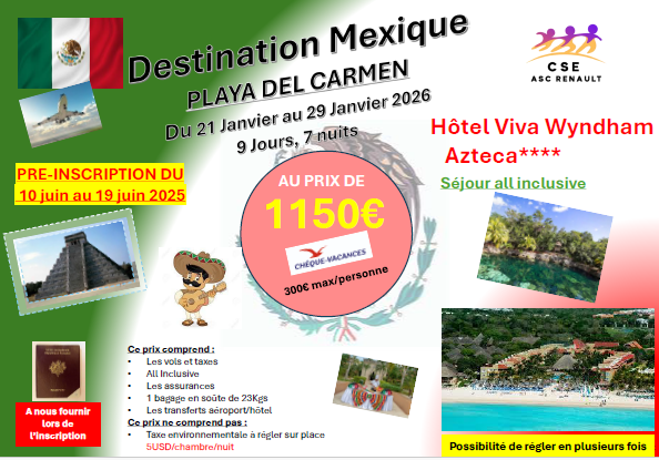 Votre CSE a le plaisir de vous proposer une nouvelle fois, une destination de rêve !!!