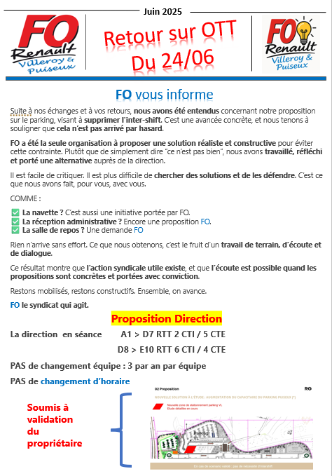 Suite à nos échanges et à vos retours, nous avons été entendus concernant notre proposition sur le parking, visant à supprimer l'inter-shift. C’est une avancée concrète, et nous tenons à souligner que cela n’est pas arrivé par hasard.